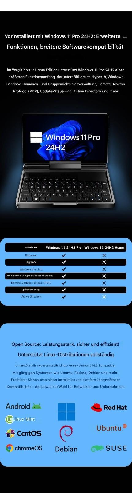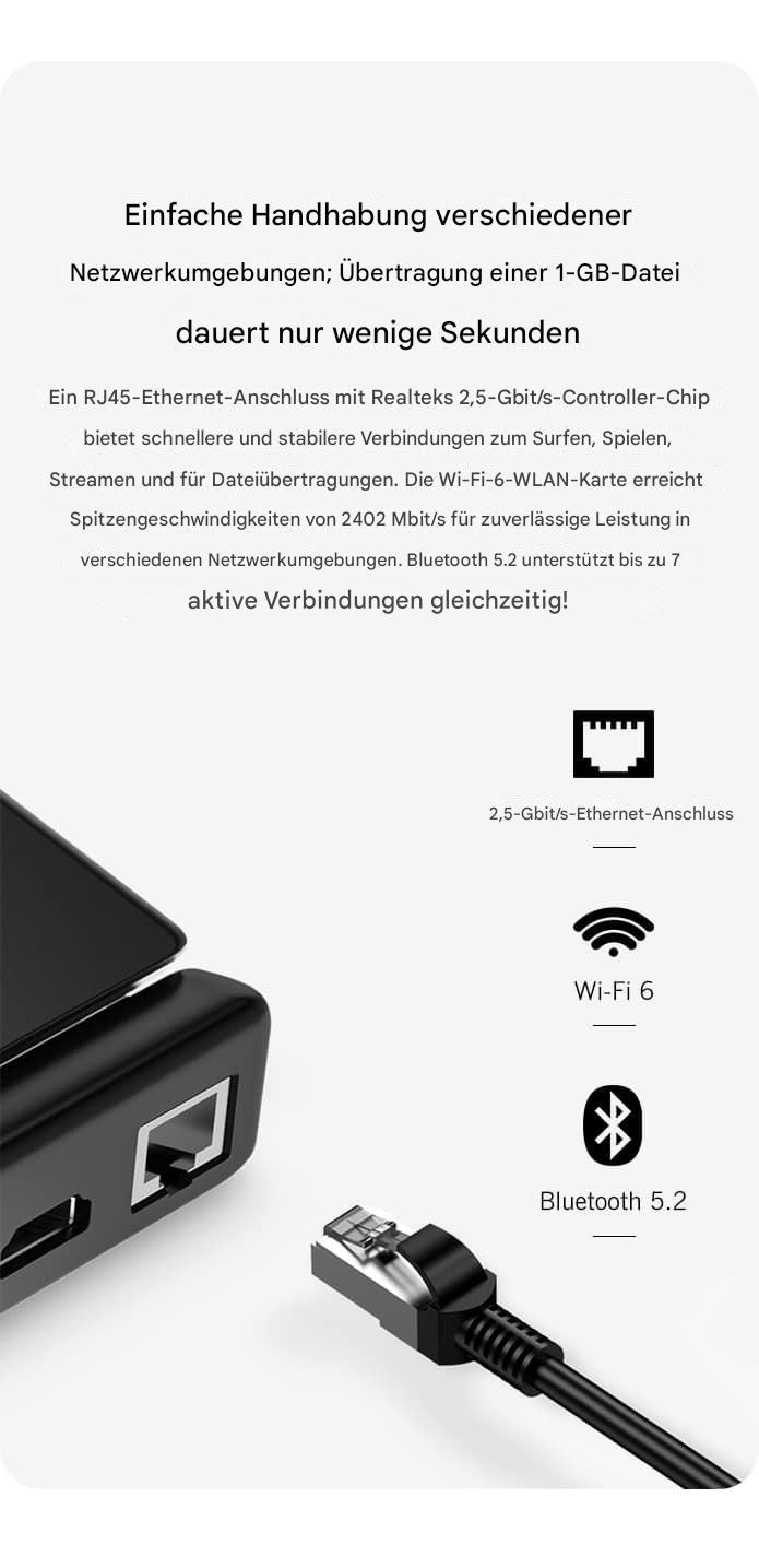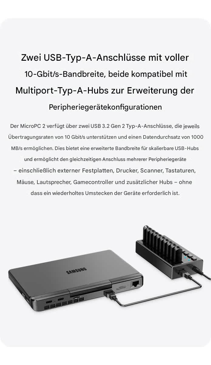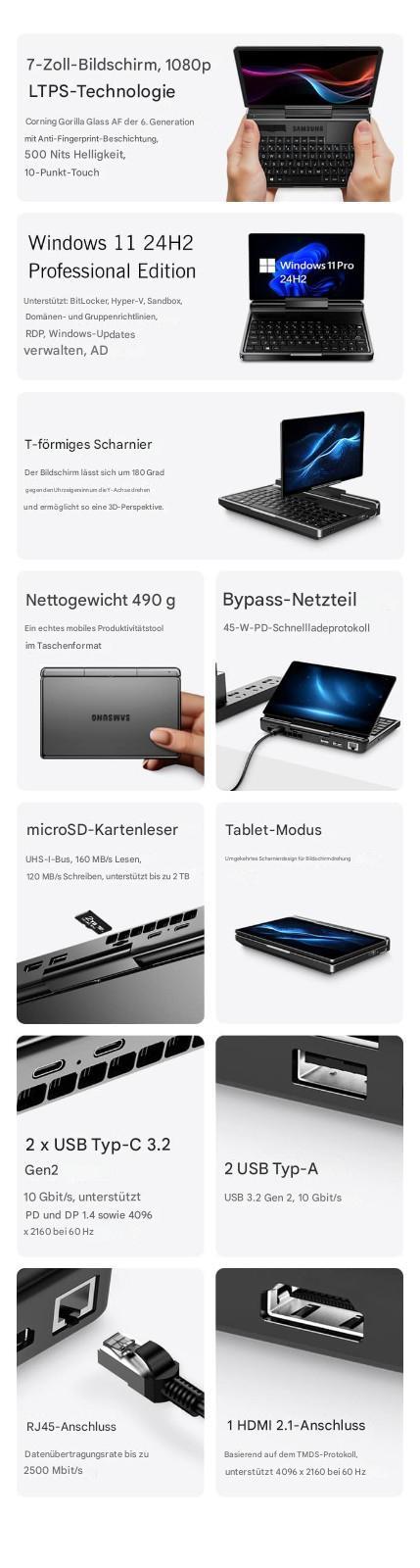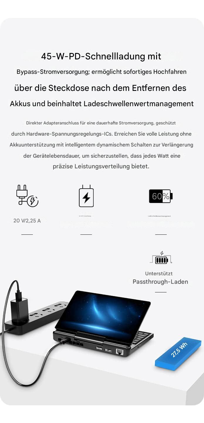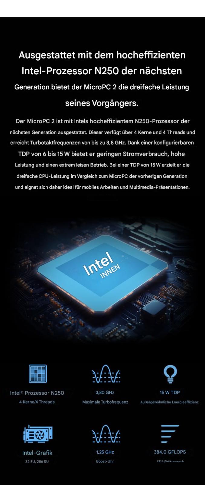 Mobiles Produktivitätstool mit Intel N250-Prozessor mit mehreren Ports, 16 GB RAM, 512 GB SSD, 15 W TDP, 2 vollwertigen USB-C-Anschlüssen und 2 USB-A-Anschlüssen